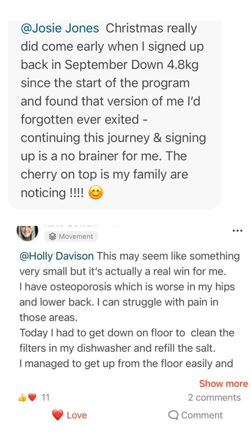 It doesn’t have to involve restrictive dieting or hours in the gym. With evidence-based movement and nutrition methods, the right support and community, you can commit to making it happen, while still enjoying your life.